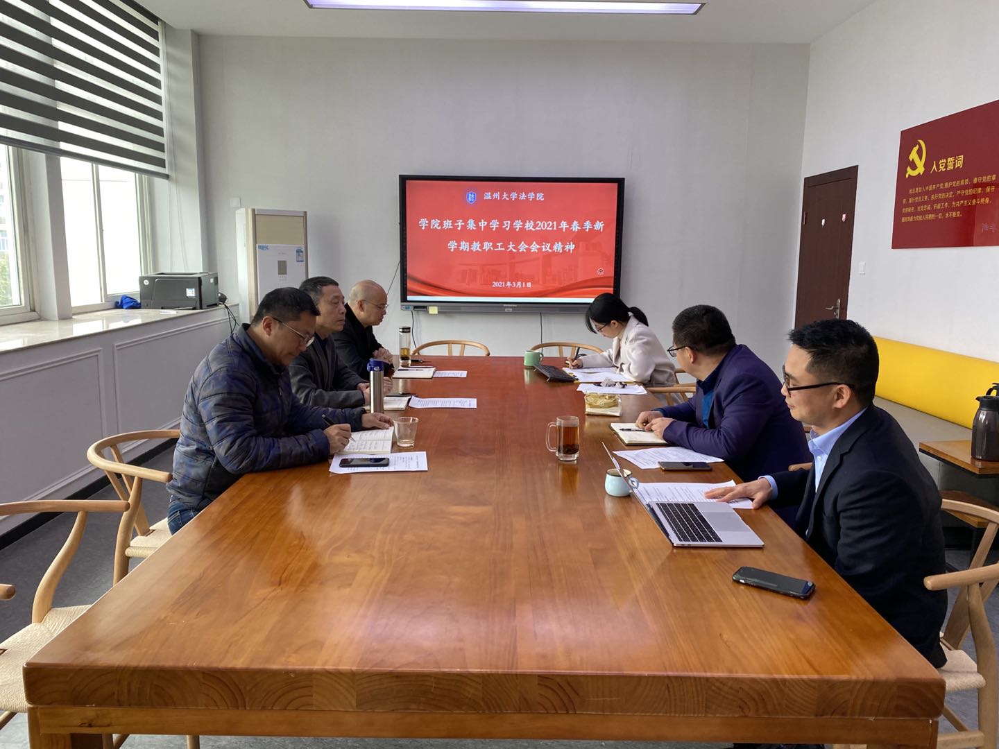 3月1日上午,彩票平台 召开学院领导班子碰头会,集中学习学校2021年春季新学期教职工大会会议精神。围绕教职工大会上谢树华书记《立足新阶段 扛起新使命 激发新动能 确保温州大学“十四五”发展开好局起好步》的大会讲话和赵敏校长《抢抓机遇锚定目标 乘势而上 全力谱写新时代学校高质量发展新篇章》的工作报告,班子成员基于各自工作,结合学校目标任务与学校“锚定3818,奋进2021”的主题主线,深入探讨学院中心任务与重点工作。