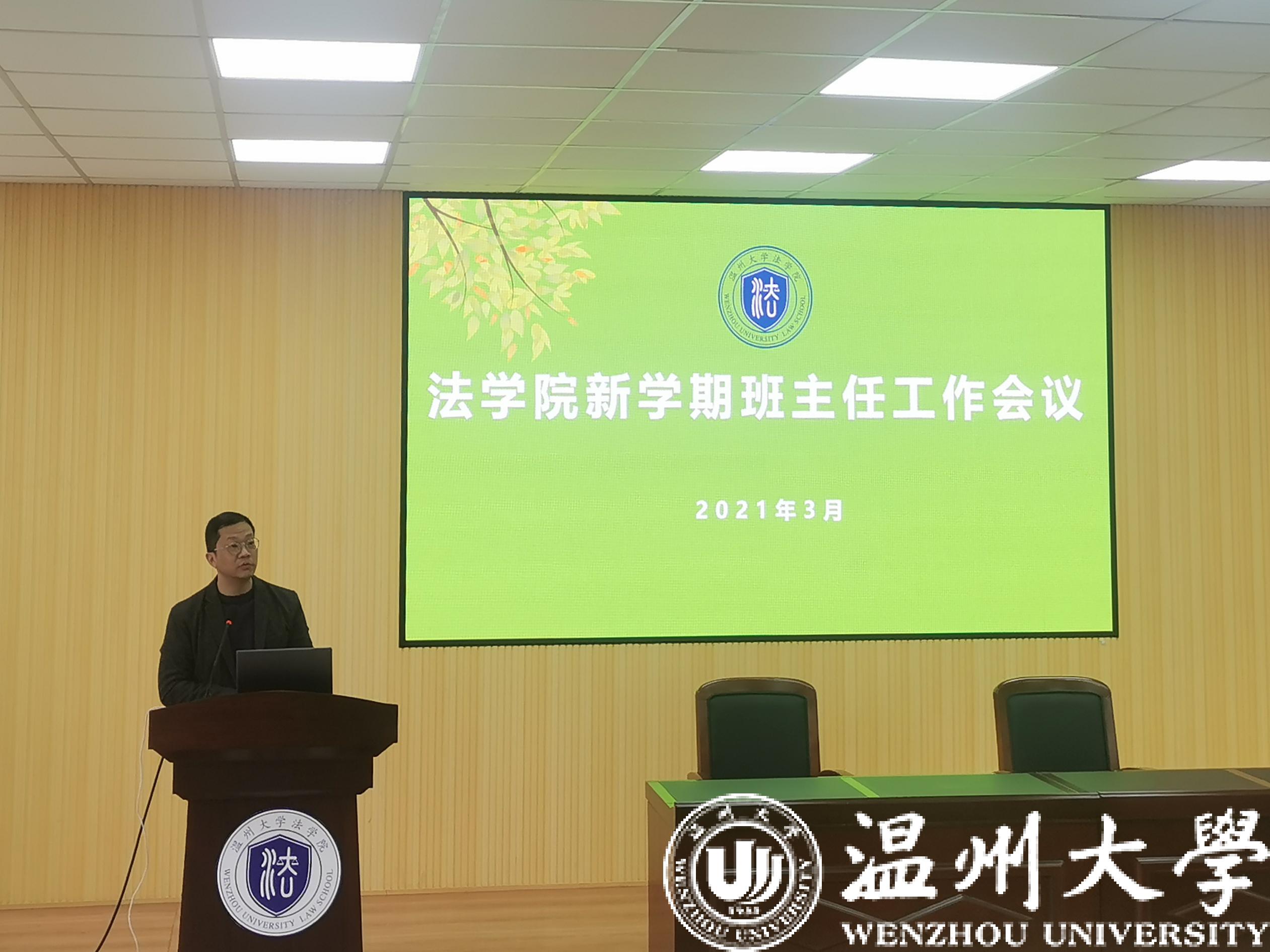 为进一步强化班级管理,明确新学期工作目标,保证新学期开学工作有序开展,2021年3月10日下午,彩票平台 在北校区3-301会议室召开全体班主任会议。学院党委副书记杨振海、学工办主任林丽丽、全体辅导员和学院全体班主任老师参加了会议。