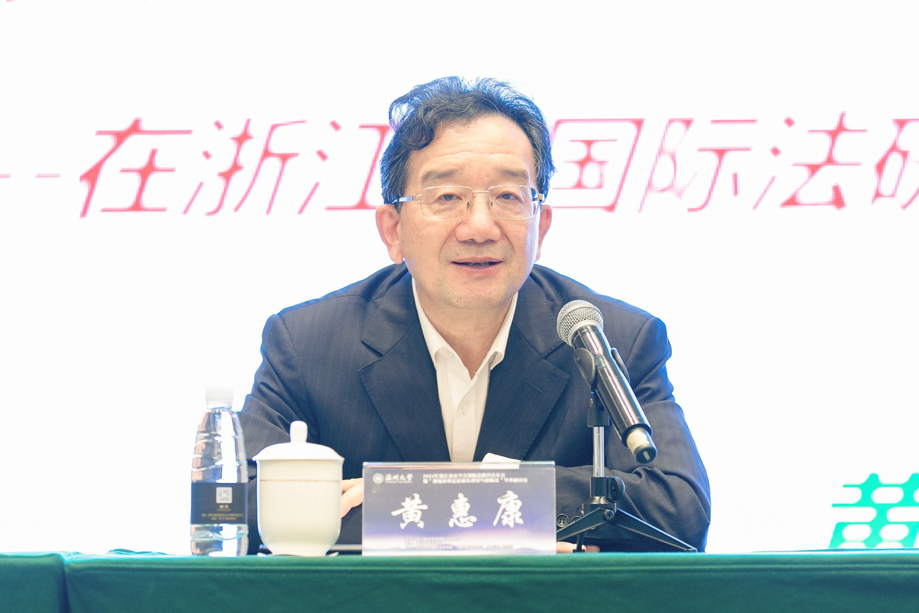 本次研讨会分为“主题演讲”“专题论坛”“研究生论坛”三个单元。原中国驻马来西亚特命全权大使、现任联合国国际法委员会委员、外交部国际法咨询委员会主任委员、浙江大学光华彩票平台 客座教授、研究会顾问黄惠康先生受邀作了题为“当前国际法热点问题及涉我风险点”的主题演讲。黄大使在发言中总结了后疫情时代国际社会所面临的四大危机,针对目前我国国际法领域潜在的八大风险点进行了深入分析。