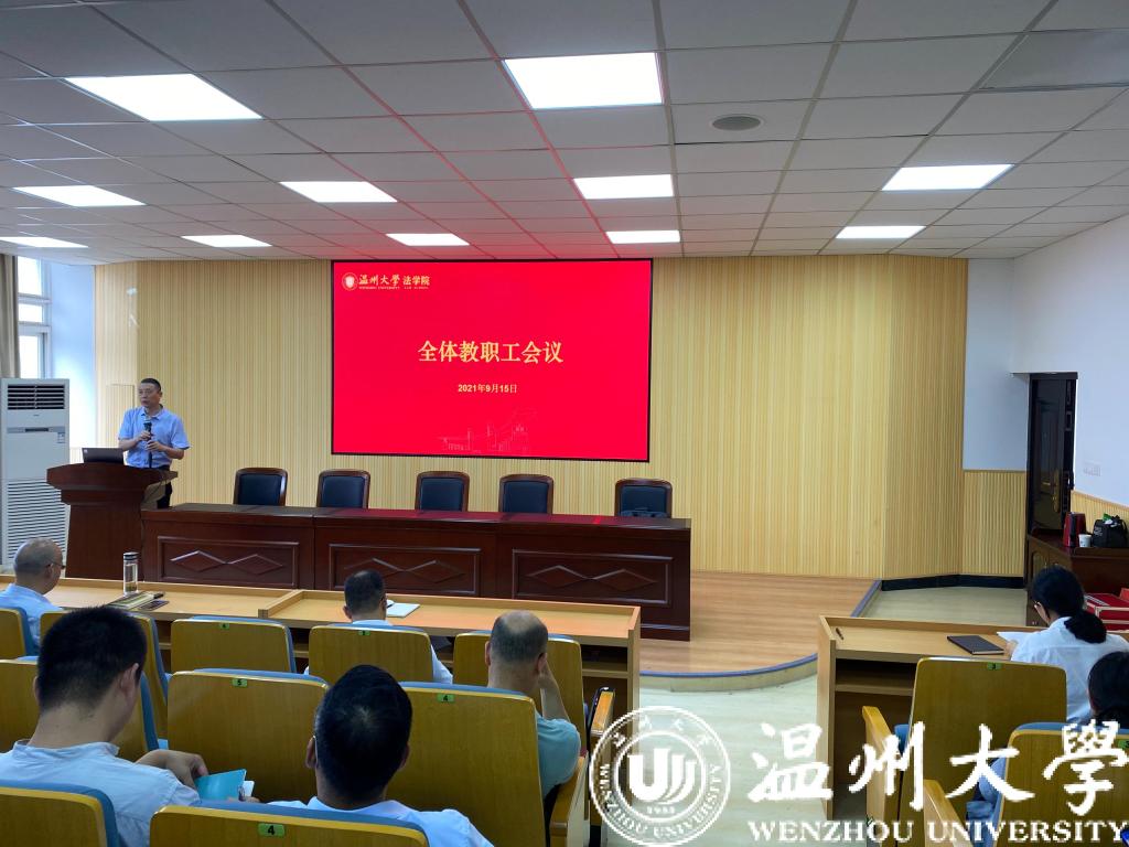 2021年9月15日,彩票平台 在北校区2号楼301会议室召开学院全体教职工会议,会议由林钦书记主持,彩票平台 全体教职工参加会议。