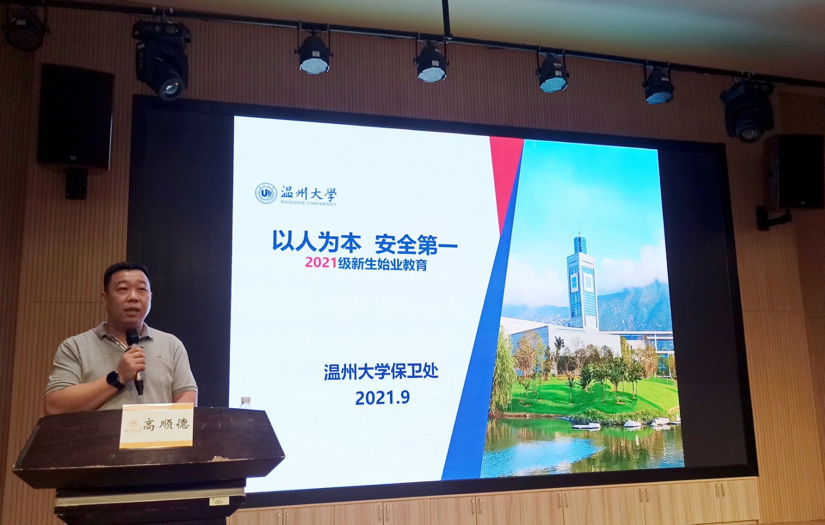 为了提高学生的遵纪守法意识、安全防范意识,学院开展安全教育活动。邀请温州大学保卫处高顺德老师给2021进行“以人为本,安全第一”专题讲座,由学院学工办主任林丽丽老师讲解《温州大学学生手册》中有关学生的管理规定。